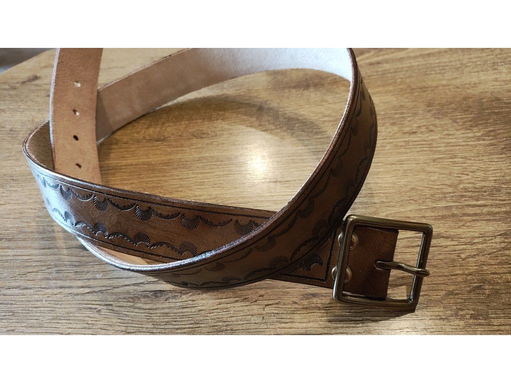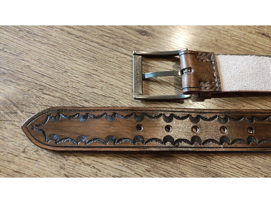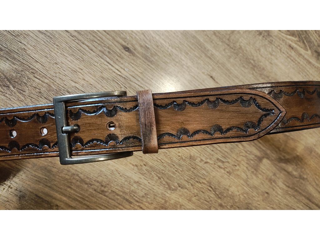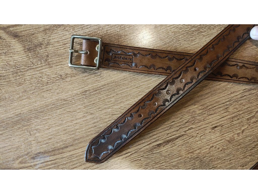 kůže silná 3mm zdobeno ražbou, zvýrazněno barvou, zalakováno