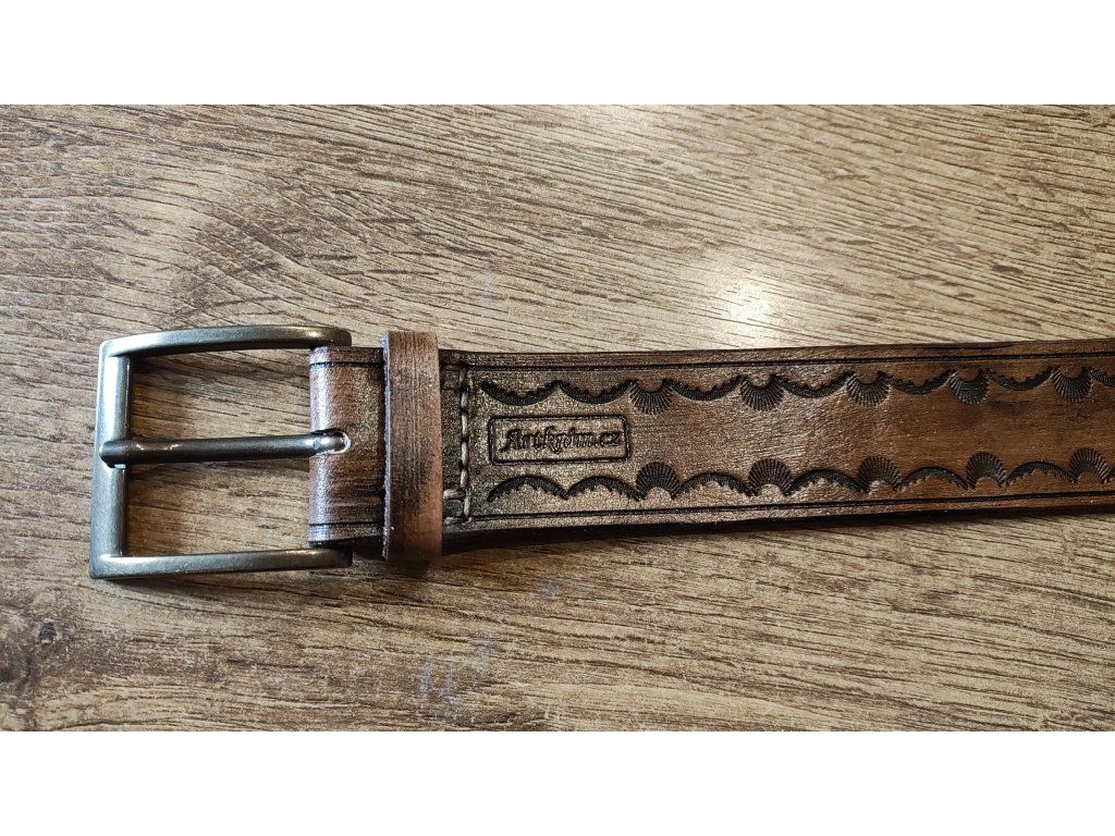varianta šířky 4 cm má přišitou přezku s koženým poutkem
